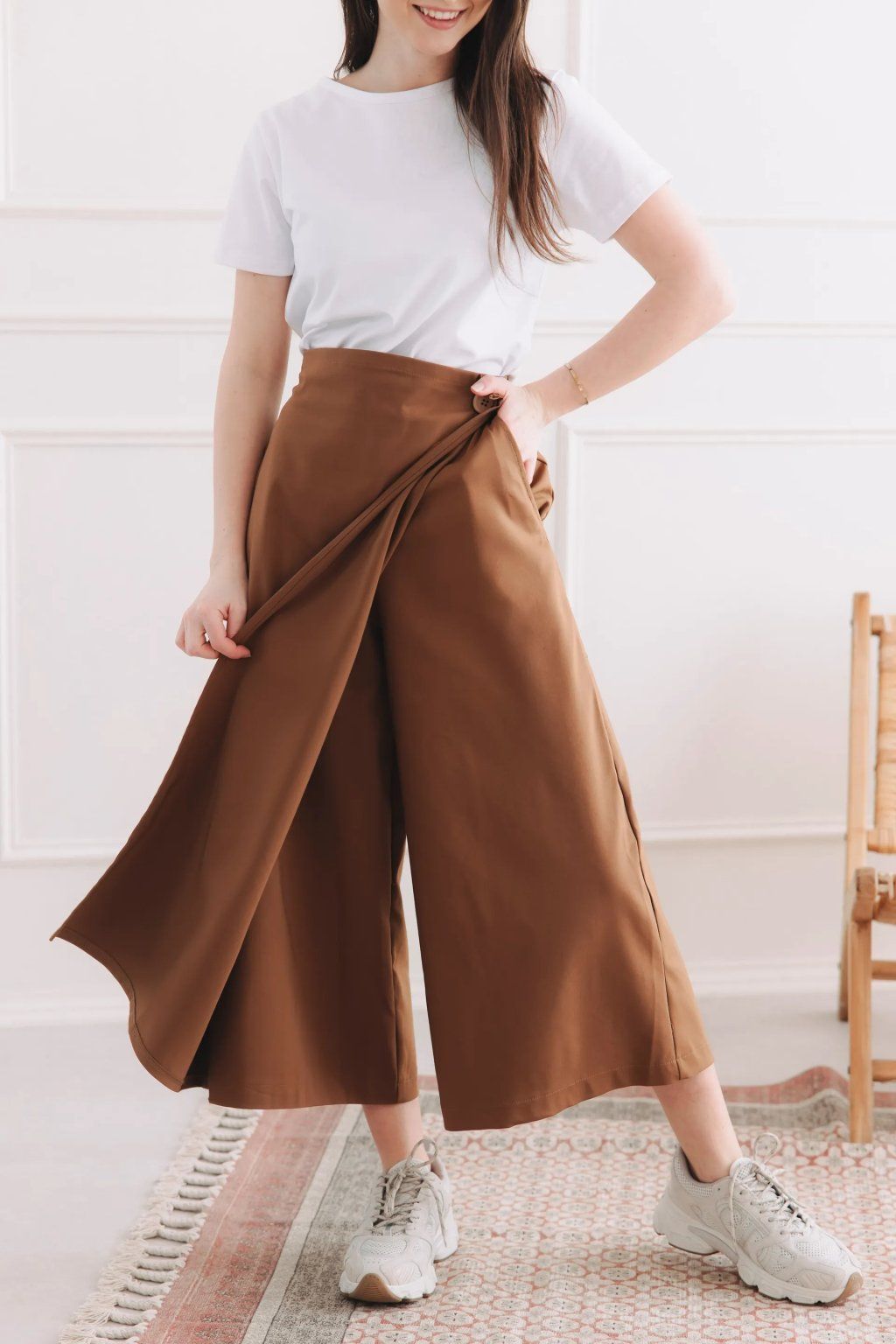 Nakisai je originální a designový kousek, který mistrně propojuje dva světy: pohodlí kalhot a ženskost sukně. Je důkazem, že minimalismus může být neuvěřitelně hravý. Není to jen oblečení, je to postoj. Díky svému jedinečnému střihu se hodí na každou postavu, jelikož chytře maskuje nedostatky a zvýrazňuje přednosti. Jednoduše elegantní a dokonale pohodlná.