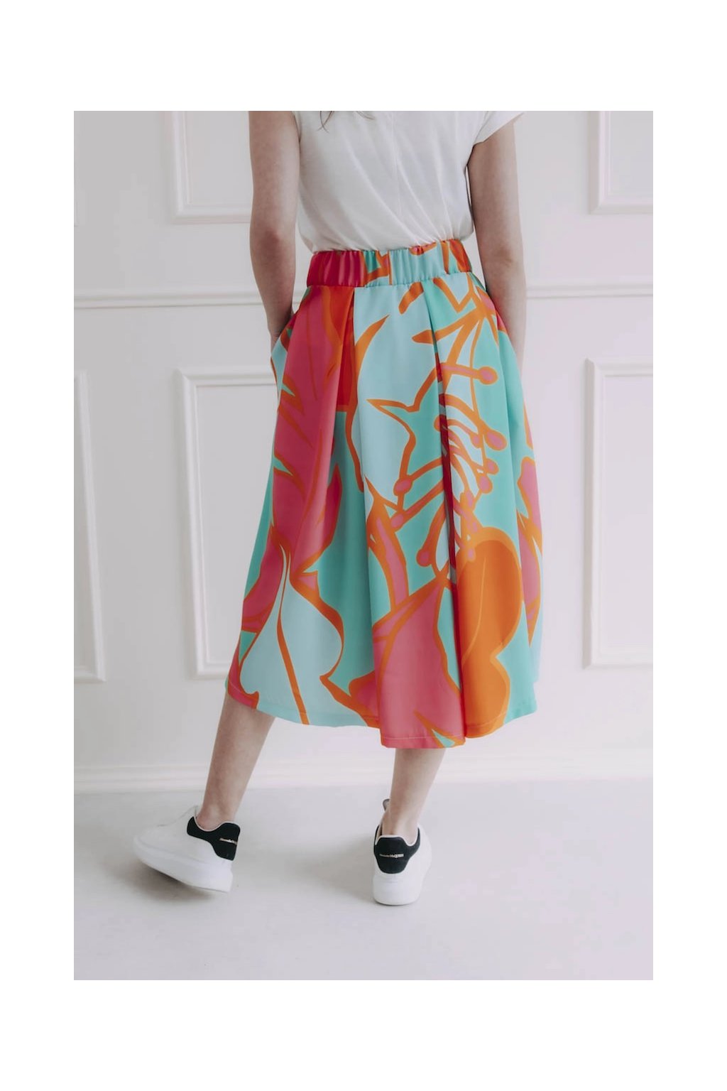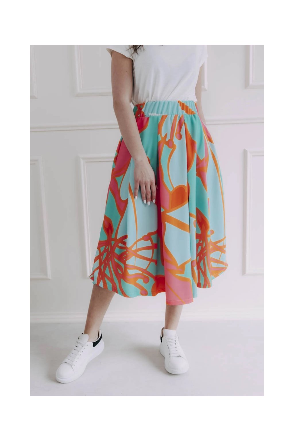 Sukni Malkia Summer Midi si zamilují hlavně ty z nás, které rády ukážou nožky, a zároveň se tak úplně necítí v krátkých délkách. Sahá totiž zhruba do půlky lýtek. Její délku si ale můžete upravit, jak je libo, Malkia vás nijak omezovat nebude. Má totiž pružnou gumu v pase, takže si ji stačí posunout v pase o kousíček výš, nebo naopak stáhnout níž.