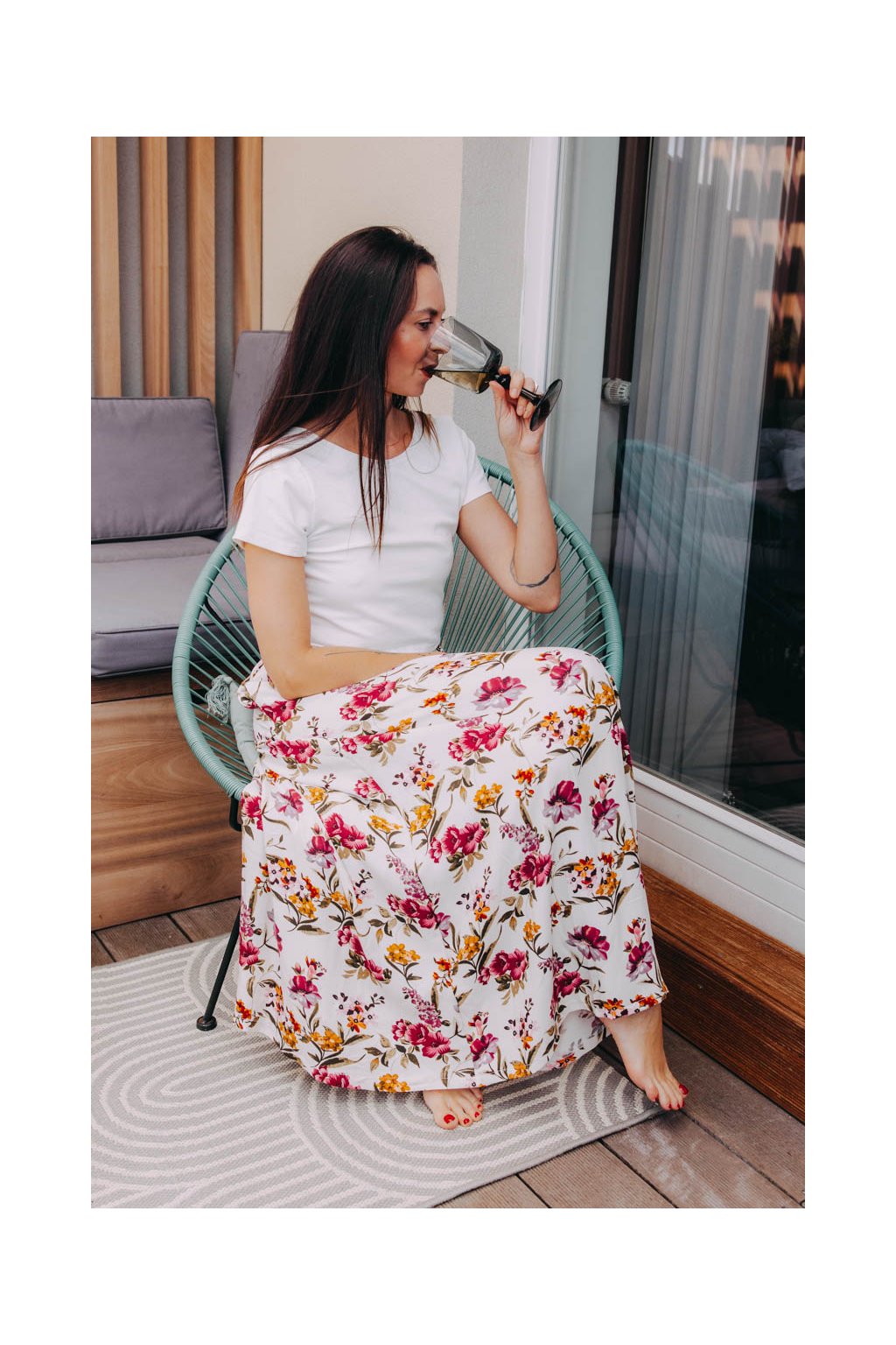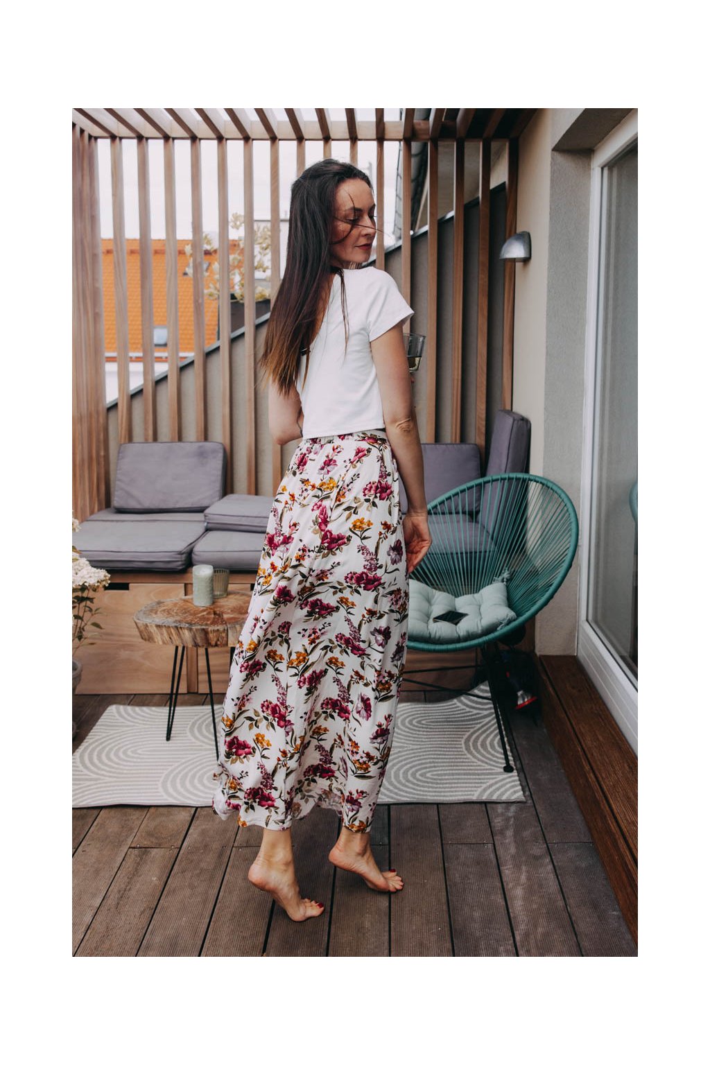 Volná áčková maxi sukně z příjemného materiálu, s gumou v pase, řasením a kapsami se hodí pro všechny situace, kdy uvítáte volnost a pohodlí.