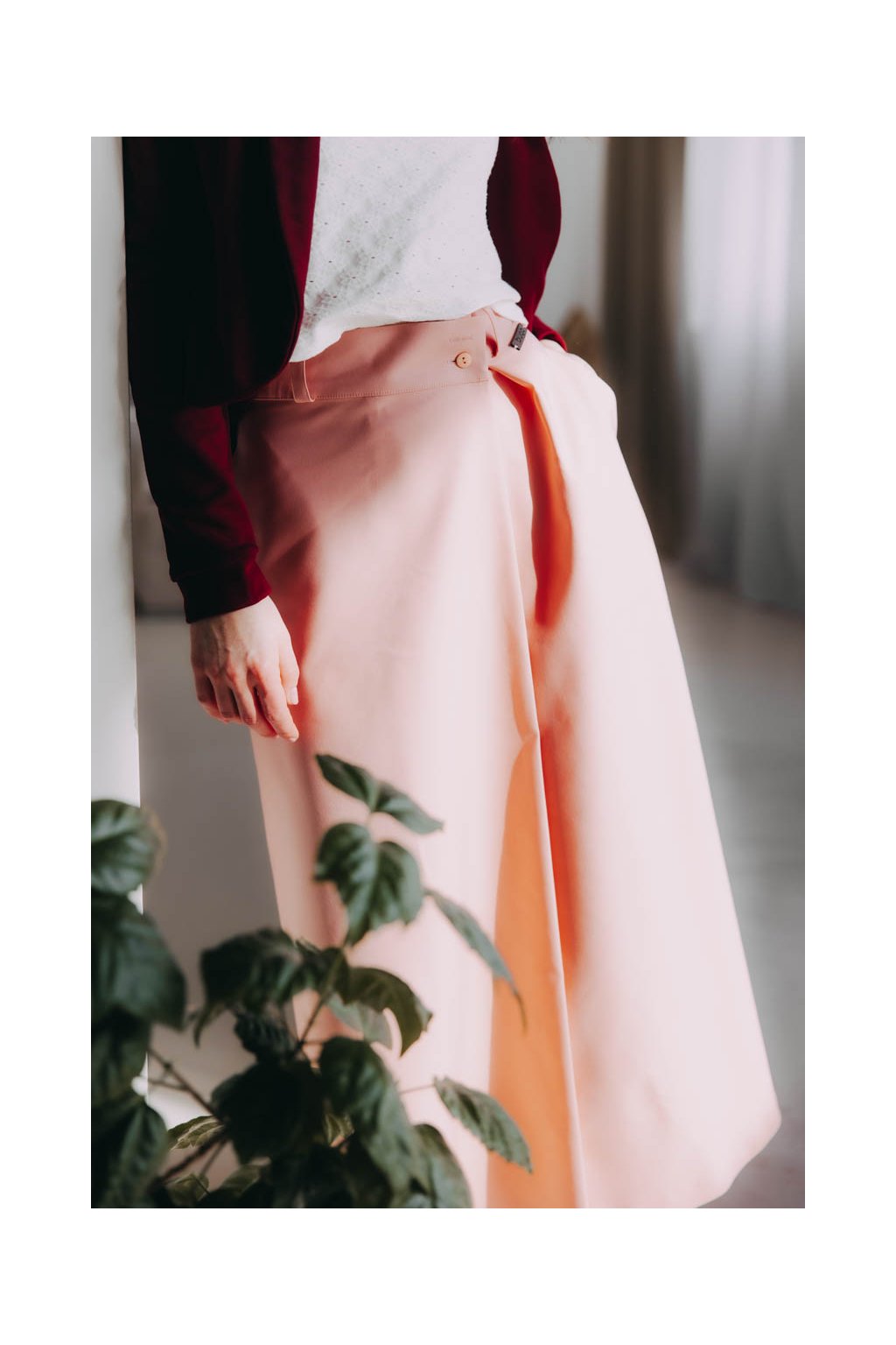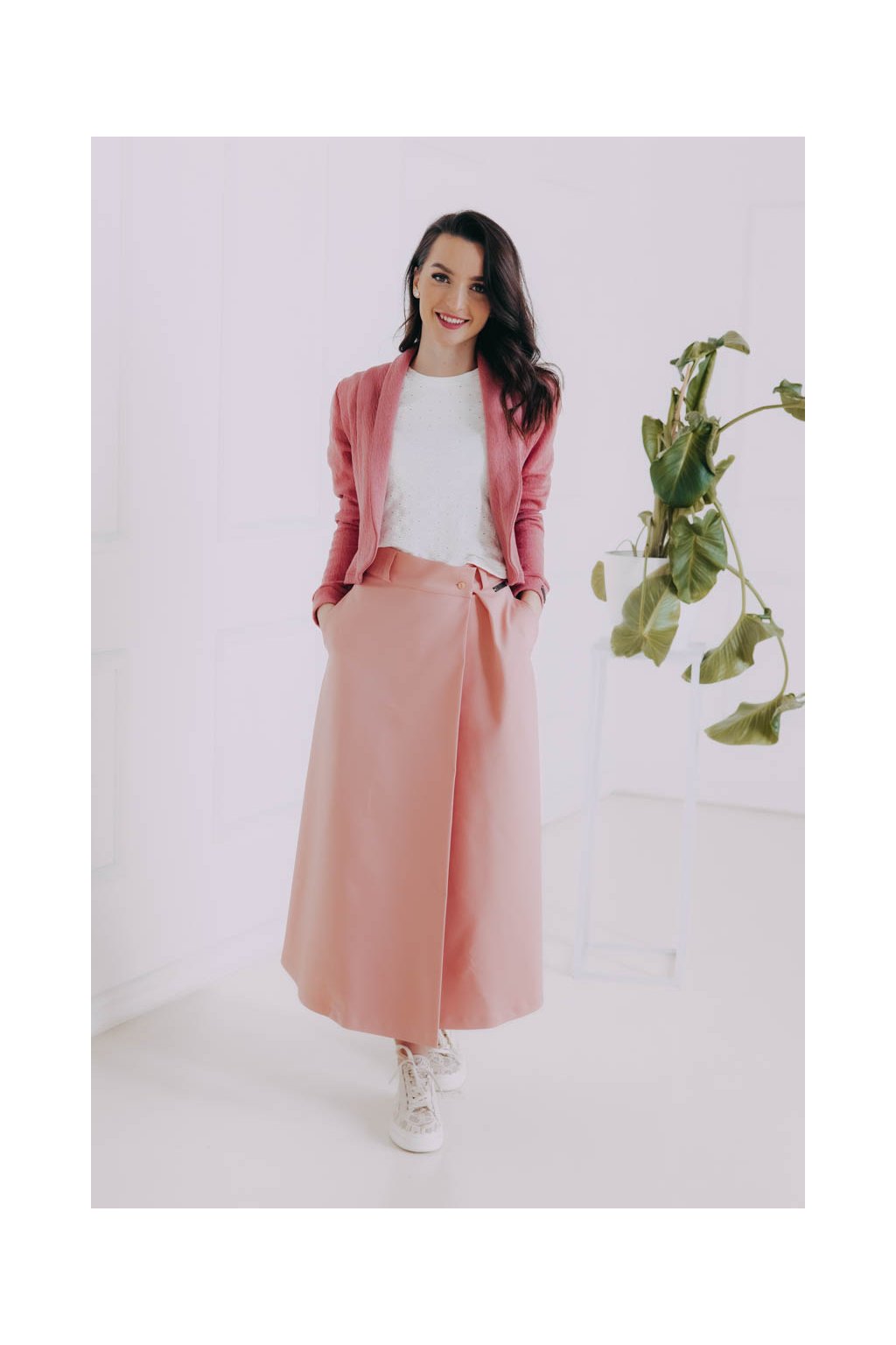 Zavinovací sukně Luo s pevně vsazeným páskem a zapínáním na knoflíčky lichotí každé postavě a skvěle se s ní vydovádíte i při kombinování.