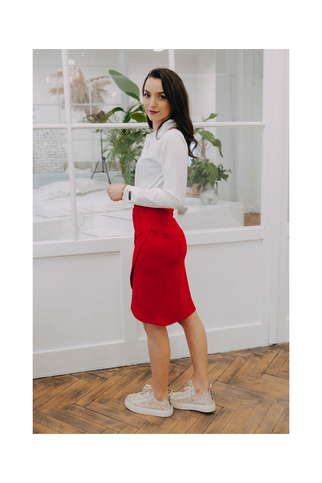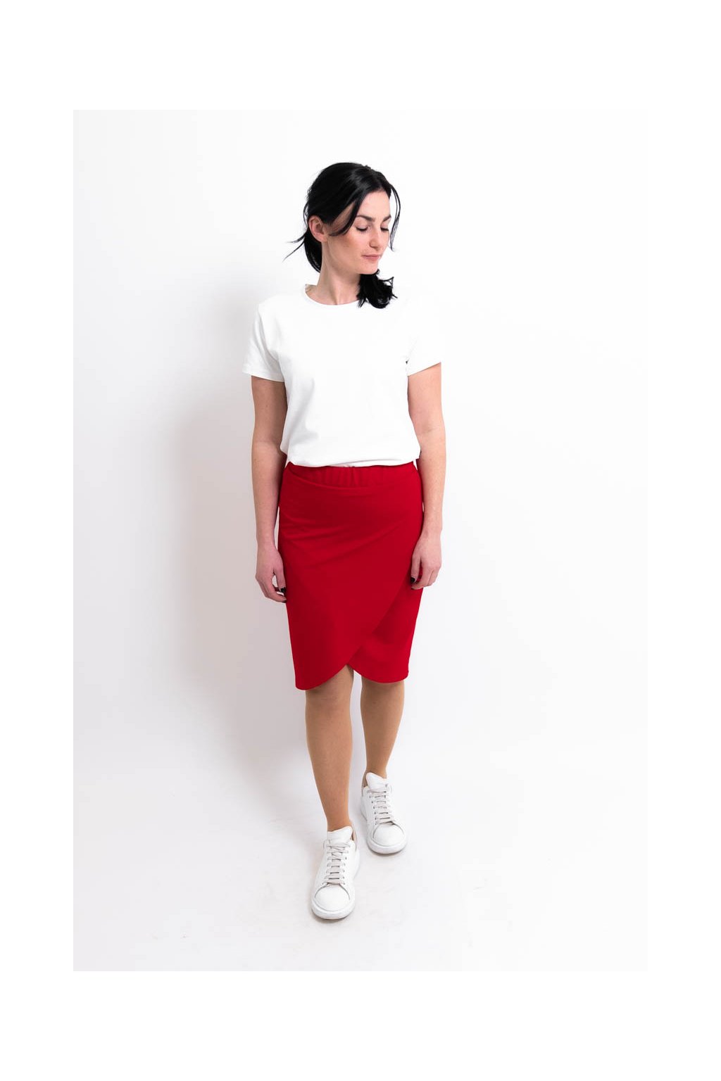 „Dva přední díly přeložené, ale zavinovačka to není, jasný pane,“ řekla by ve své hádance Popelka, kdyby vyprávěla o sukni Mali. Sice se tak tváří, ale nenechte se zmást prvním pohledem. Absolutní pravdou je však její pohodlí, o které se stará pevnější materiál ze směsi viskózy, nylonu a trošky spandexu.