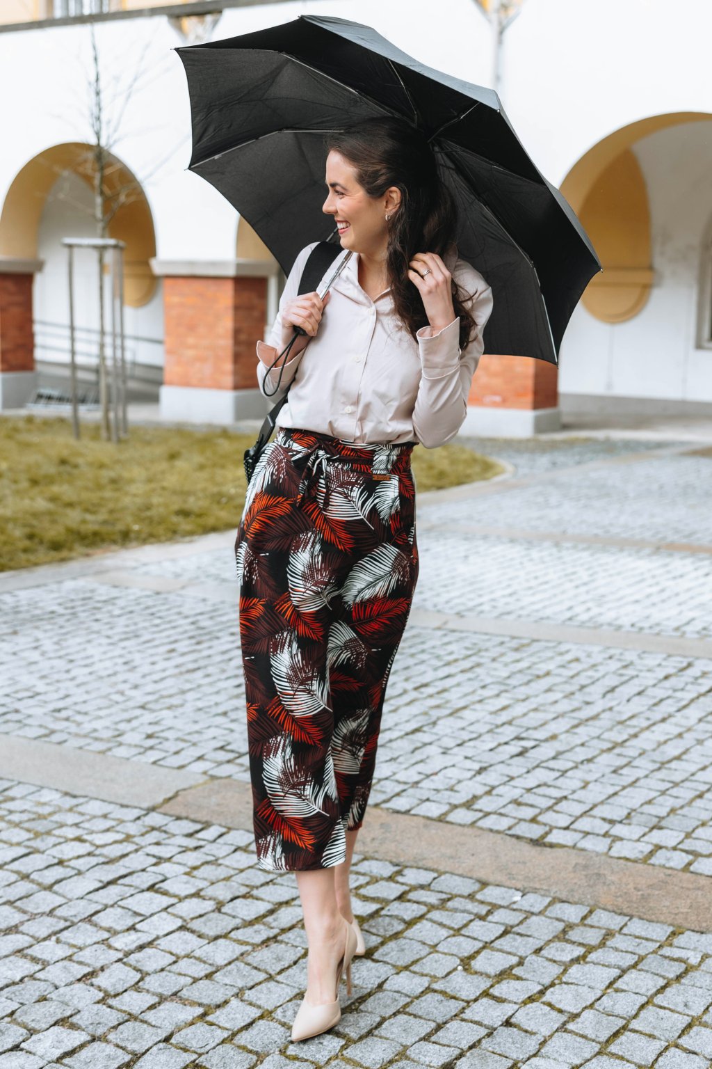 Sukně Maude sahá asi do poloviny lýtek, její široký pas si můžete vytáhnout výš nebo nechat v úrovni boků. Bez obav si do ní můžete zastrčit košili i top, stáhnout pas šňůrkou a sukně pěkně drží na svém místě. Po stranách má dvě kapsy, do nichž hravě schováte pár drobností. Typicky ženským elementem je pak rafinovaný rozparek.