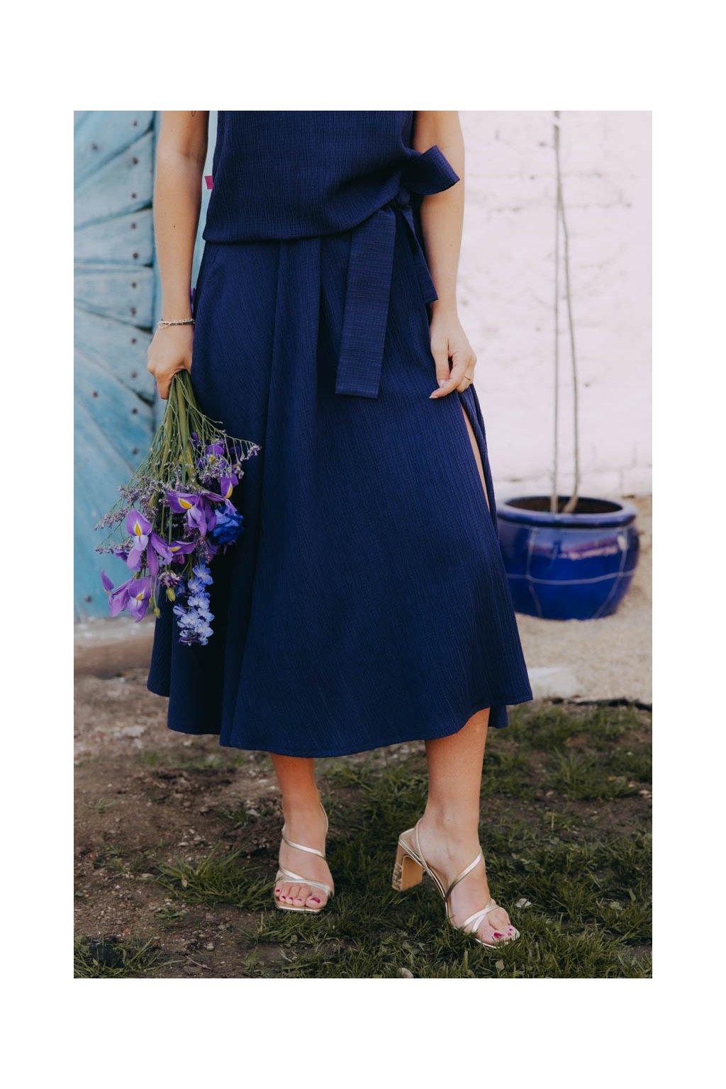 Sukně Mawe Abbaio ve střihu zavinovací áčkovky je to pravé pro každou svatebčanku, která chce vypadat šik a cítit se skvěle po celý slavnostní den.