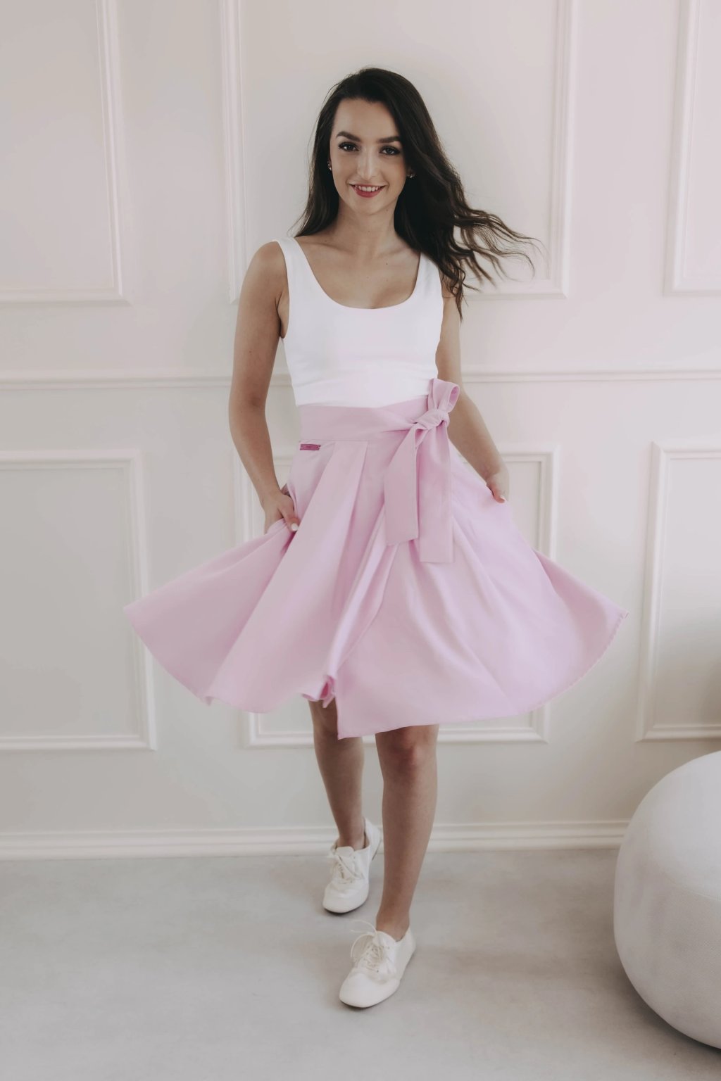 Růžová áčkovka Mawe si se svoji starší ségrou v ničem nezadá. Zavinovací, pohodlná, skvěle kombinovatelná, no prostě stejně skvělá. Jen krapítek kratší.