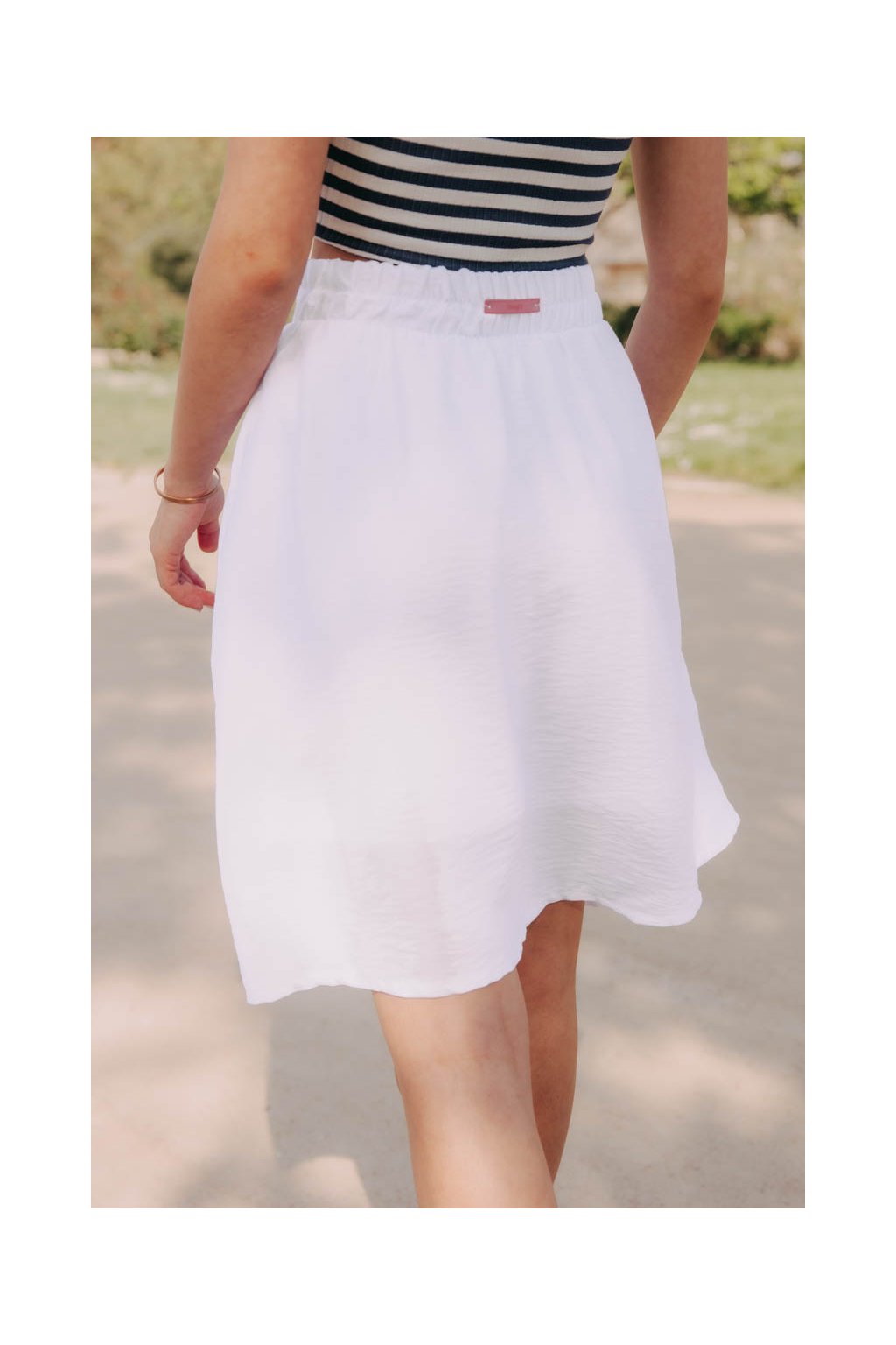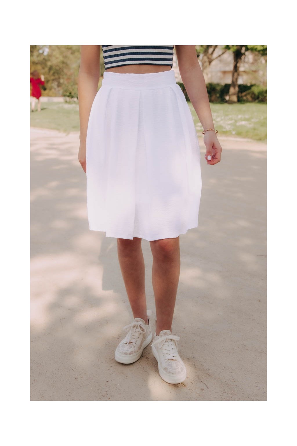 Áčková sukně Sheba Pearl bude klenotem vašeho letního šatníku. Je jemně nařasená, s kapsami a krásně vzdušná. Zářivou bílou „jistí“ praktická spodnička.