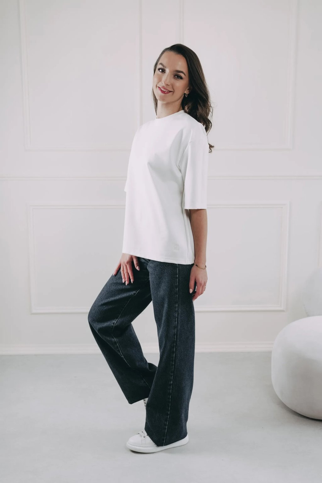 Volné oversized tričko pro styl bez námahy. Sluší, ať už ho nosíte ležérně přes kalhoty, nebo elegantně zastrčené. Prostě tričko, co umí obojí. A skvěle.
