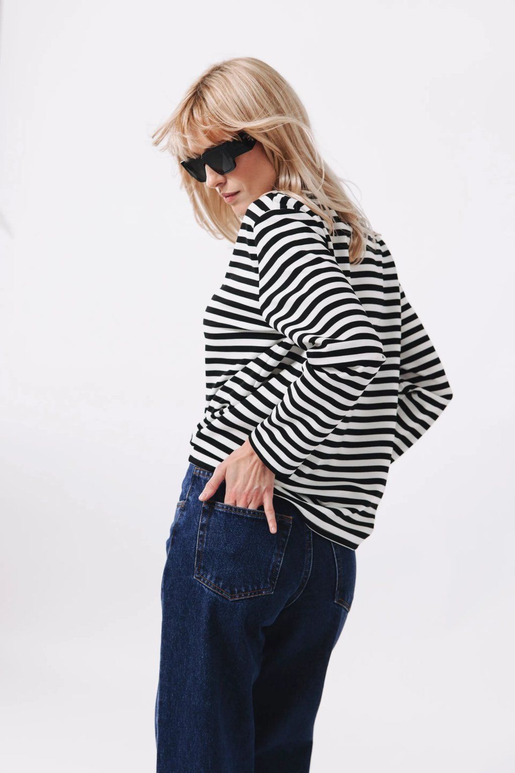 - Nesmrtelný design: Černobílý proužek je pilířem pro každý kapsulový šatník.