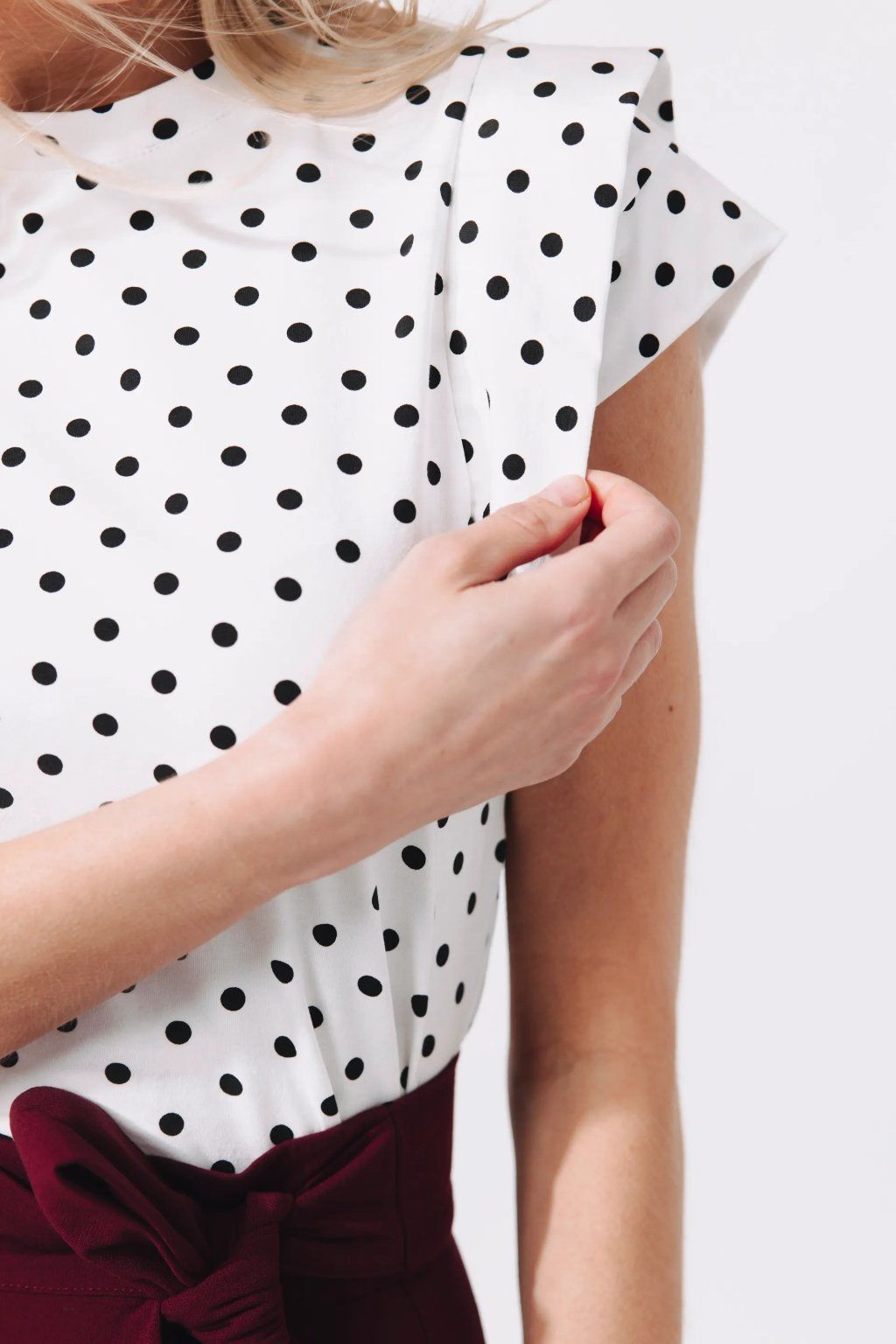 Víme, co si myslíte. Další tričko do sbírky? Jenže Kimani není jen další položka v košíku. Je to ten kousek, který si obléknete, když chcete vypadat, že jste nad outfitem přemýšlela hodiny, i když jste ho na sebe hodila za tři vteřiny. Spojuje v sobě nesmrtelný puntíkatý vzor s originálním řešením rukávů, které dodá vašemu outfitu okamžitý šmrnc. Je to tričko, které v sobě nese lehkost léta, eleganci do práce a pohodlí, kterému nebudete chtít věřit.