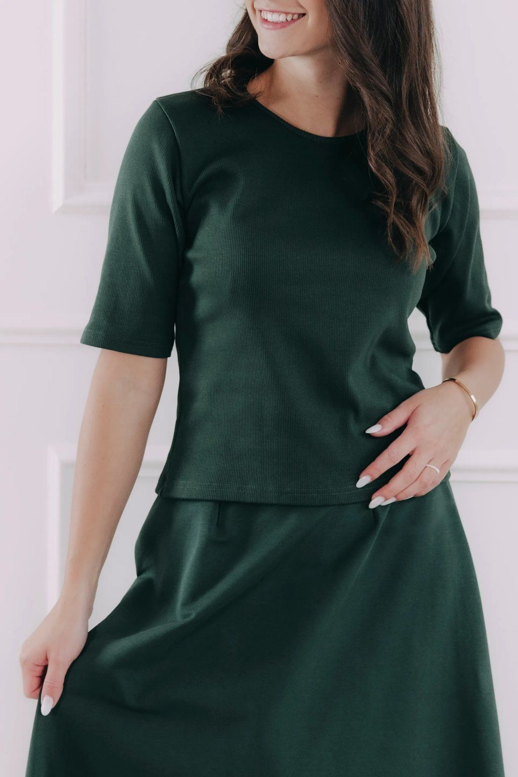 Tričko Malik je navíc jako stvořené do kompletu Mosi se sukní a mikinou. Vytvoříte si tak pohodlný komplet do práce i na cestování.