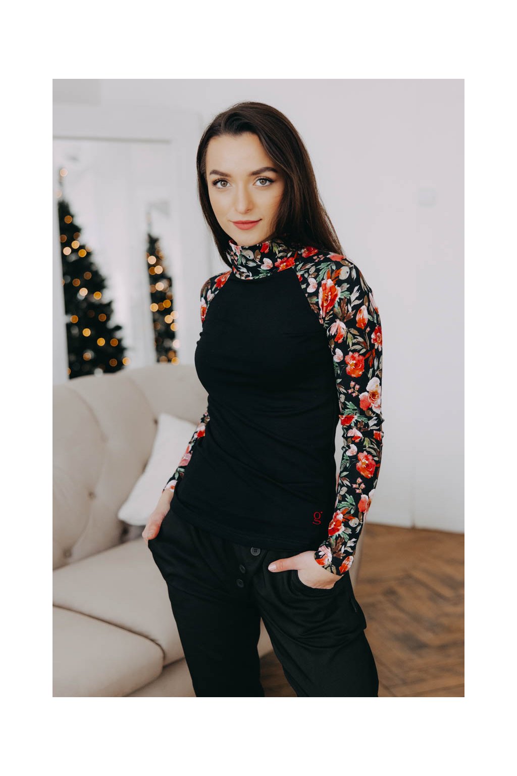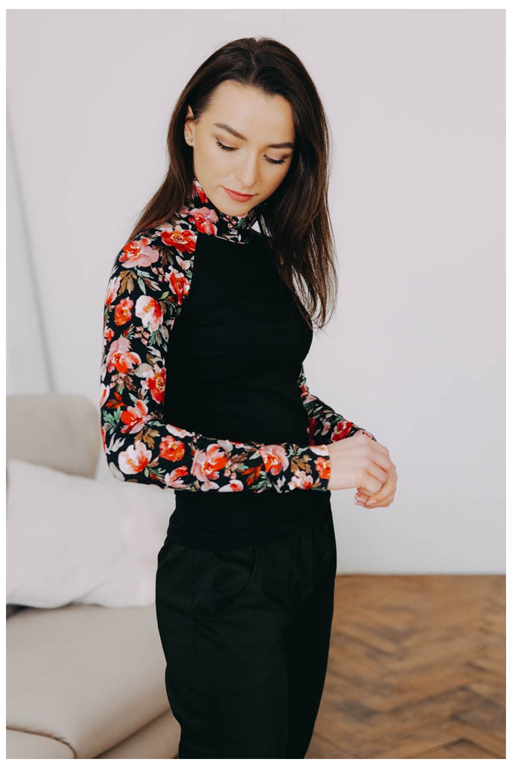Kdo řekl, že se v zimě nemůžete zahalit do květin? Raglánový rolák Abena si vzal špetku černého minimalismu, ale na rukávech rozbalil barevnou krásu.