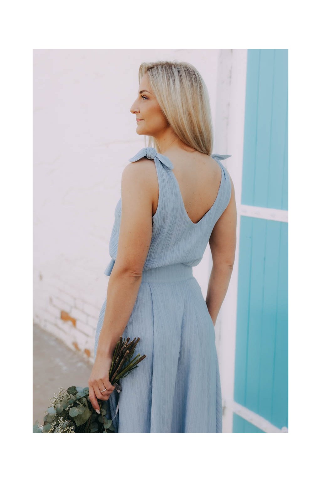 Top Abbaio zaujme hravými mašličkami na ramenou i nemačkavým materiálem. V kombinaci s áčkovou sukní Mawe utvoří dokonalý outfit pro každou svatebčanku.