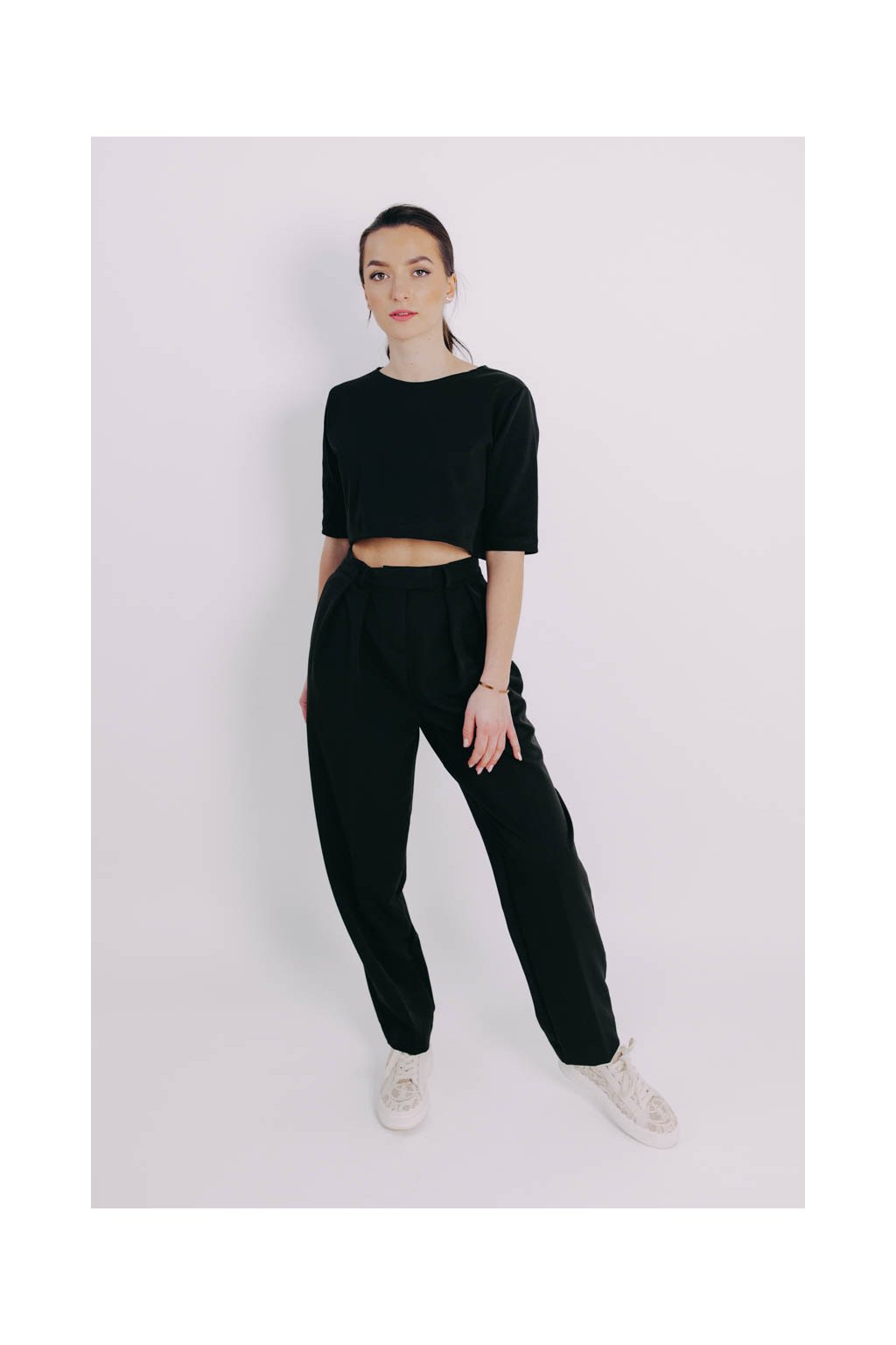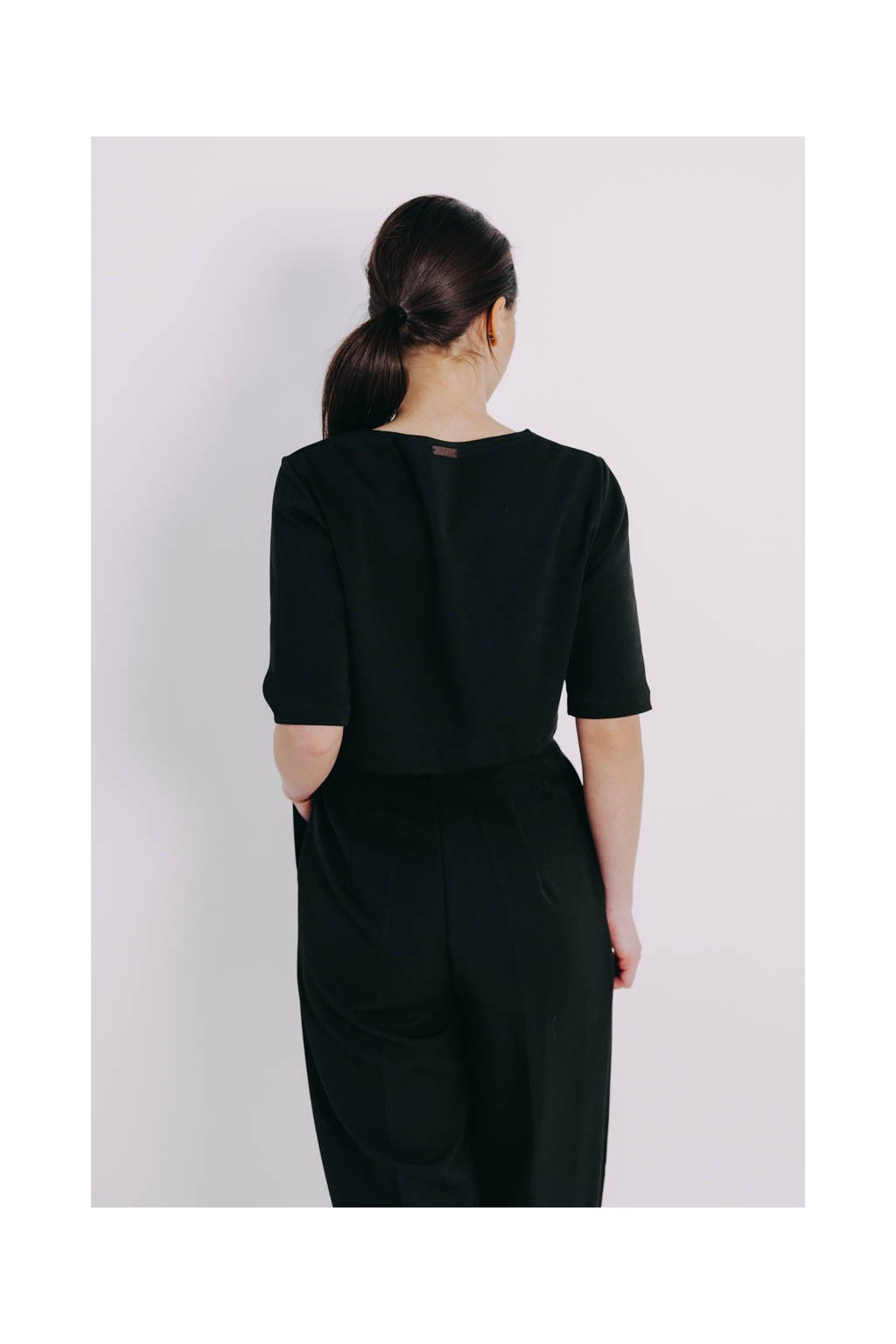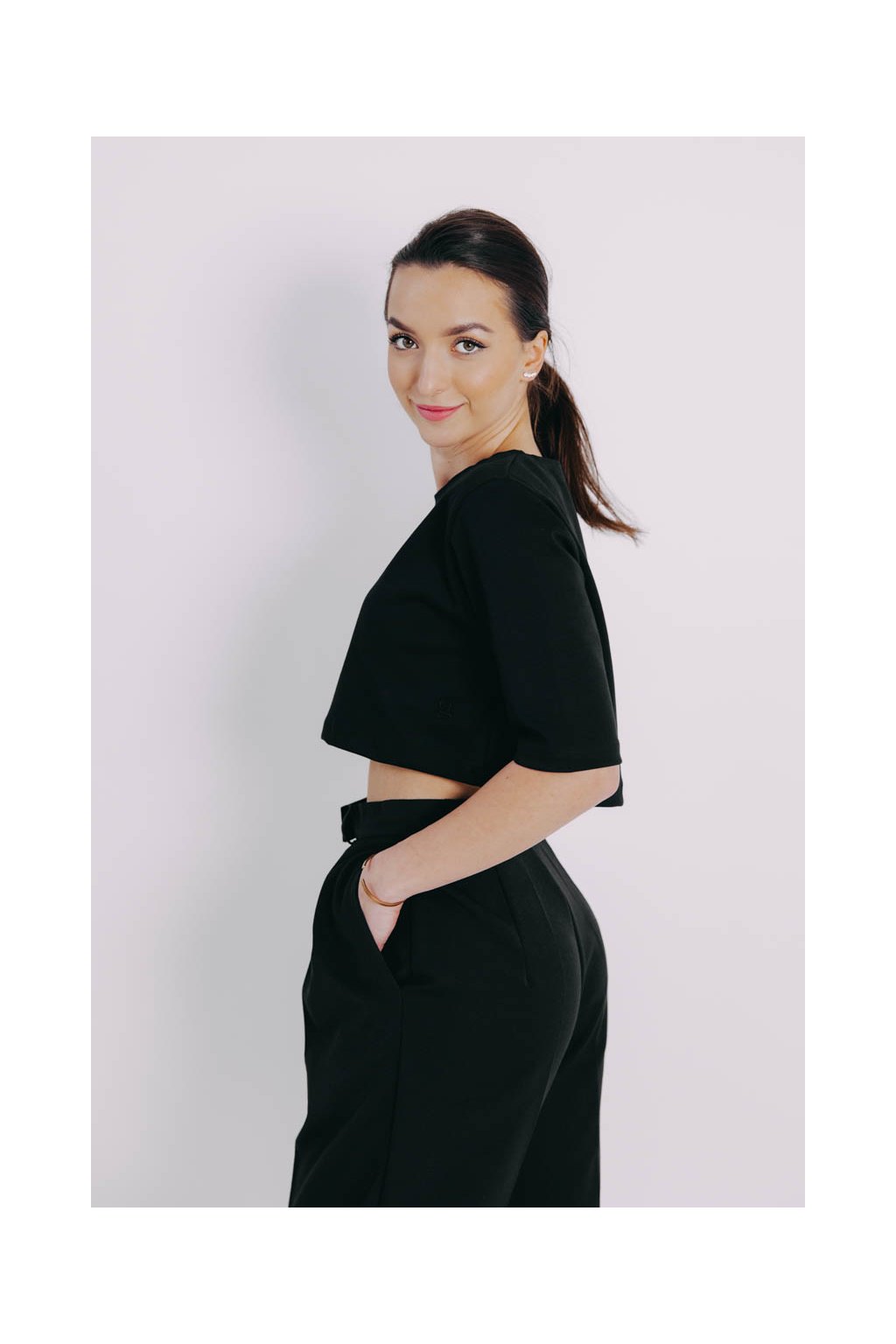 Azmera je crop top, který dokáže divy. Lichotí postavě subtilní i plnější a skvěle se kombinuje třeba přes šaty. Minimalistická černá k tomu přímo vybízí.