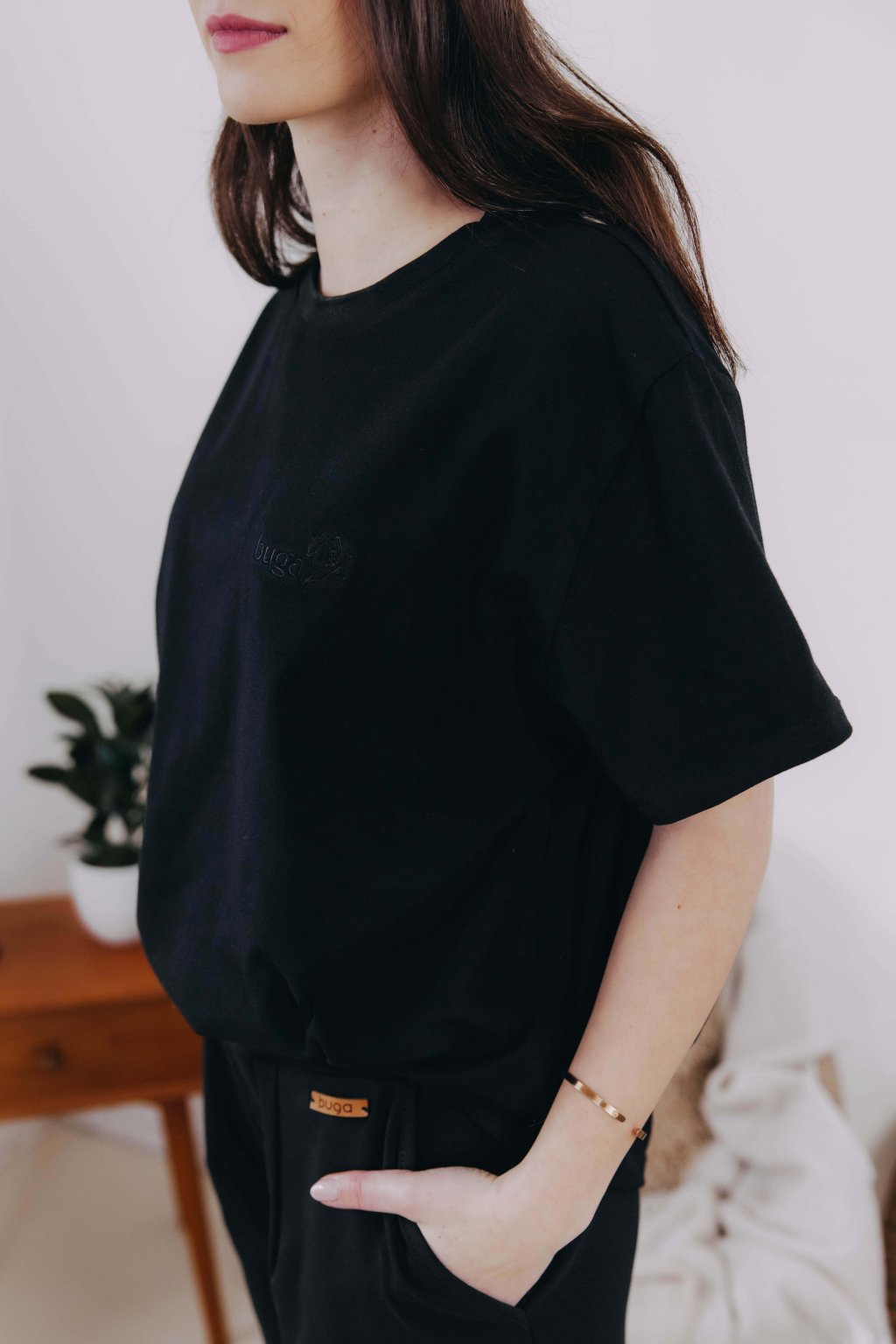 Černé nadčasové oversized tričko Gimbya ušité z prémiové bio bavlny s certifikátem GOTS. Základ kapsulového šatníku, který nikdy nevyjde z módy.