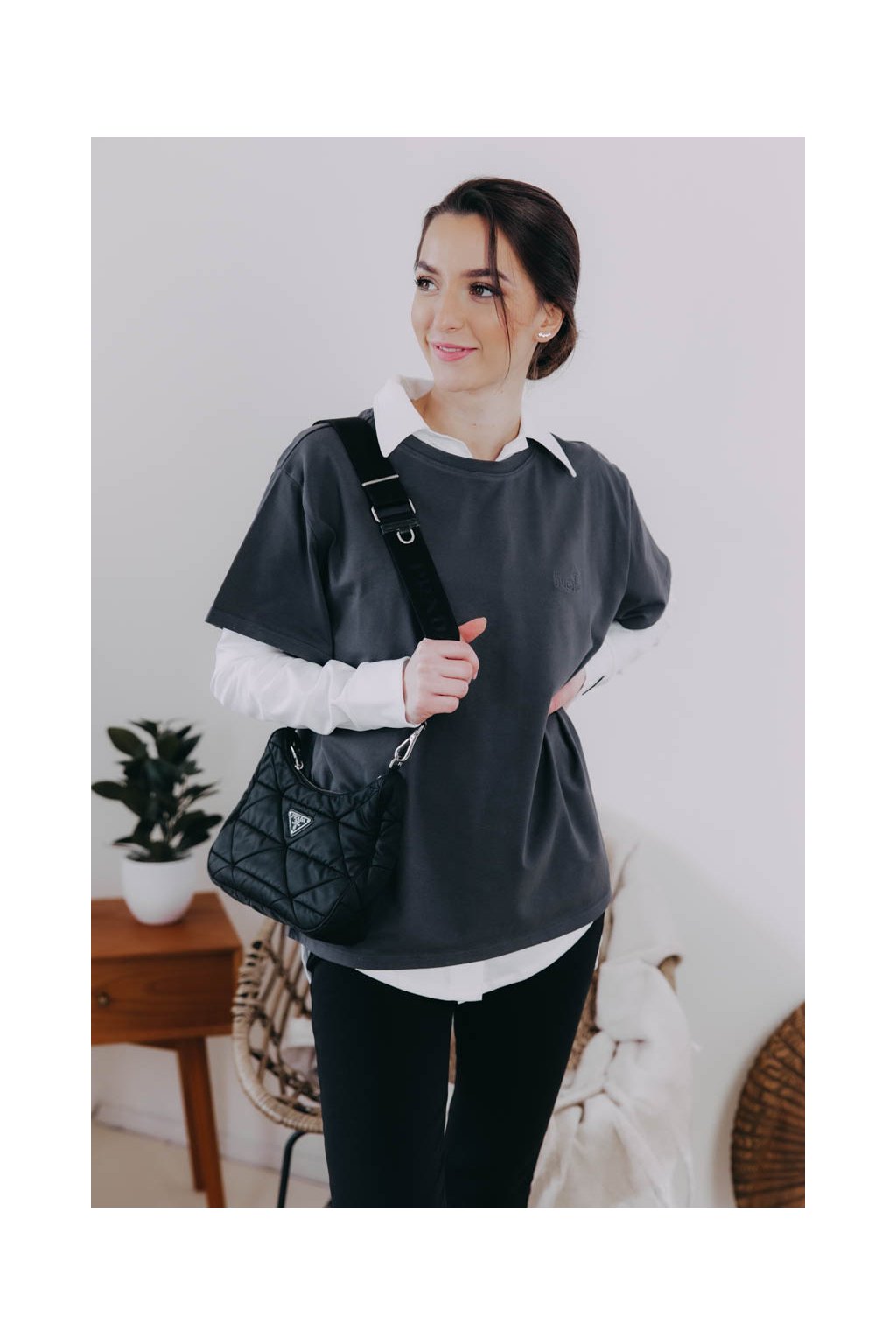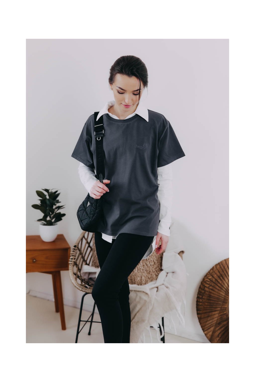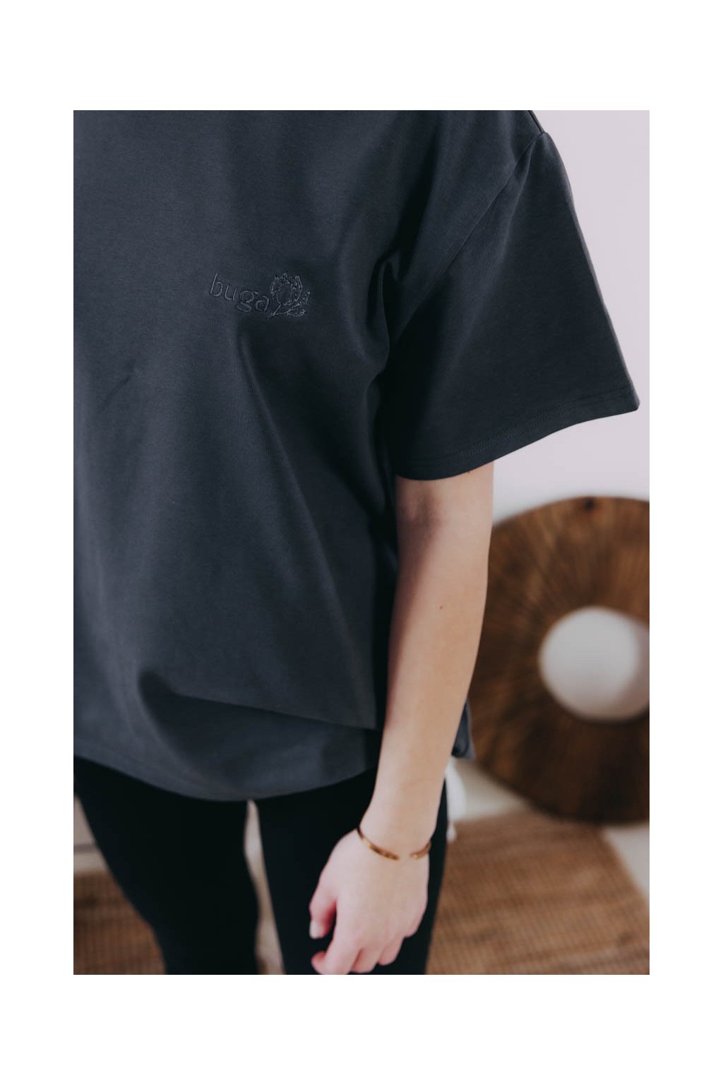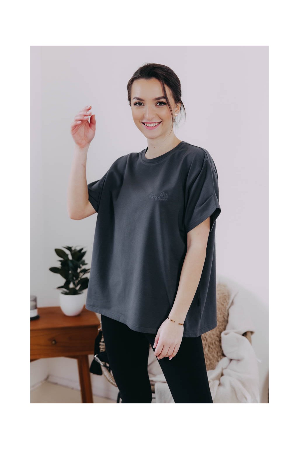 Šedé nadčasové oversized tričko Gimbya ušité z prémiové bio bavlny s certifikátem GOTS. Základ kapsulového šatníku, který nikdy nevyjde z módy.
