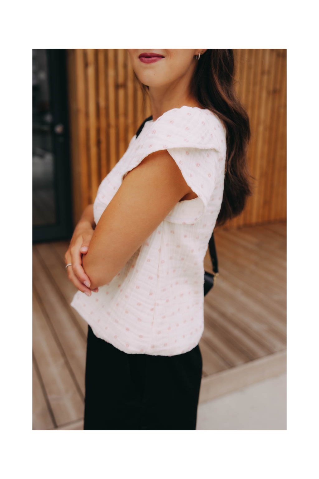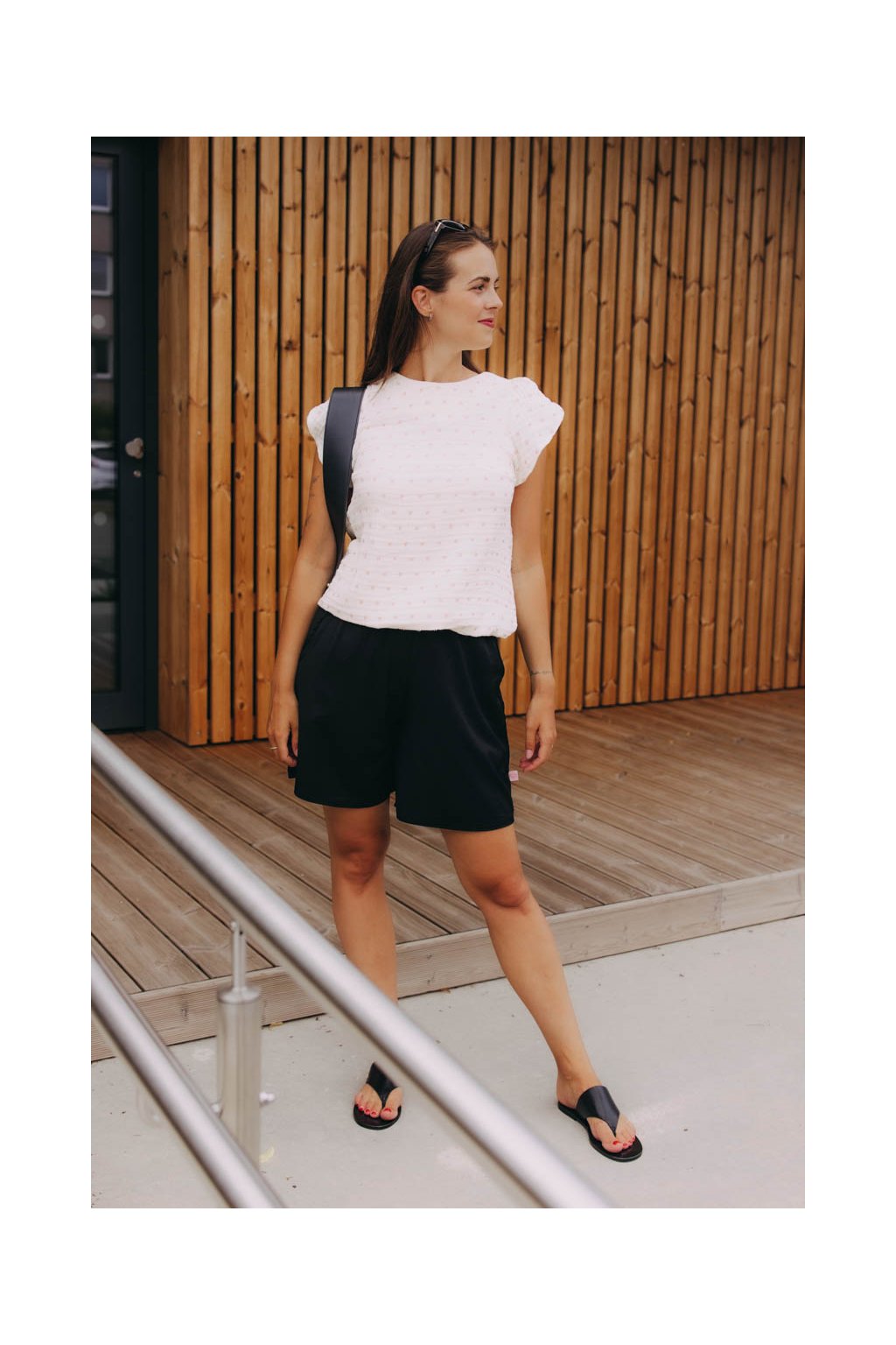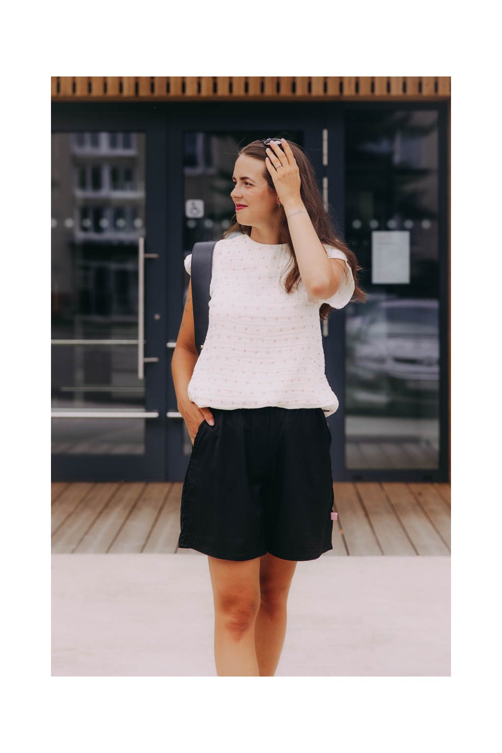Mušelínové tričko Kemi s nápaditě řešenými rukávy a praktickou gumičkou v pase na podkasání je skvělým parťákem pro letní dny a nekonečné kombinování.