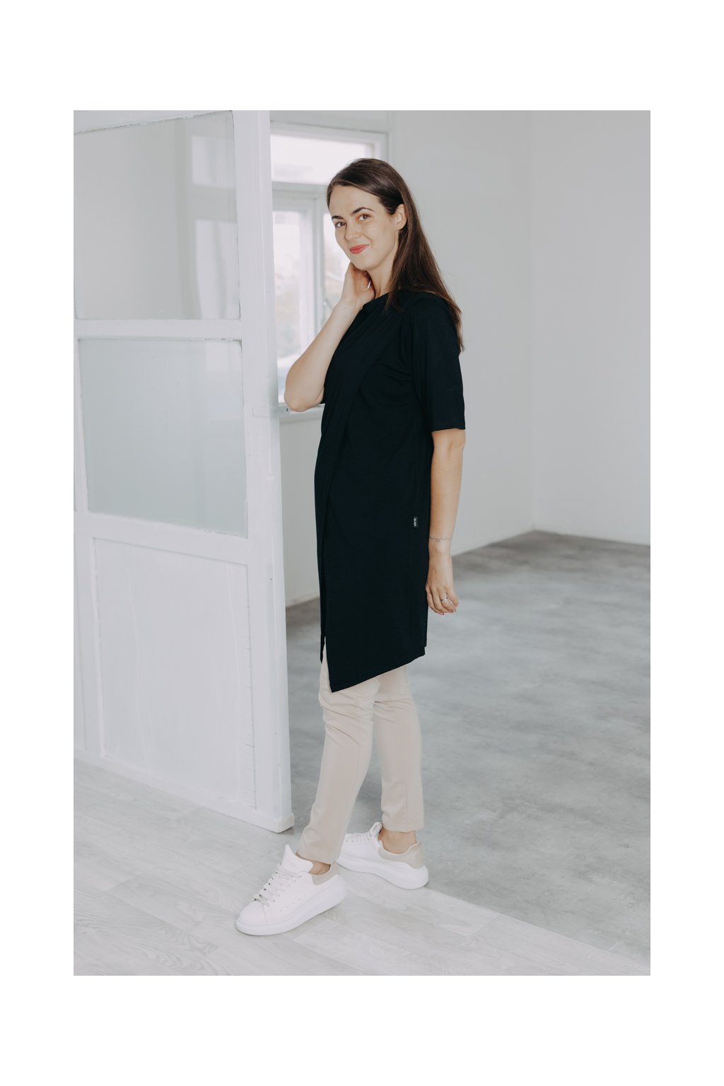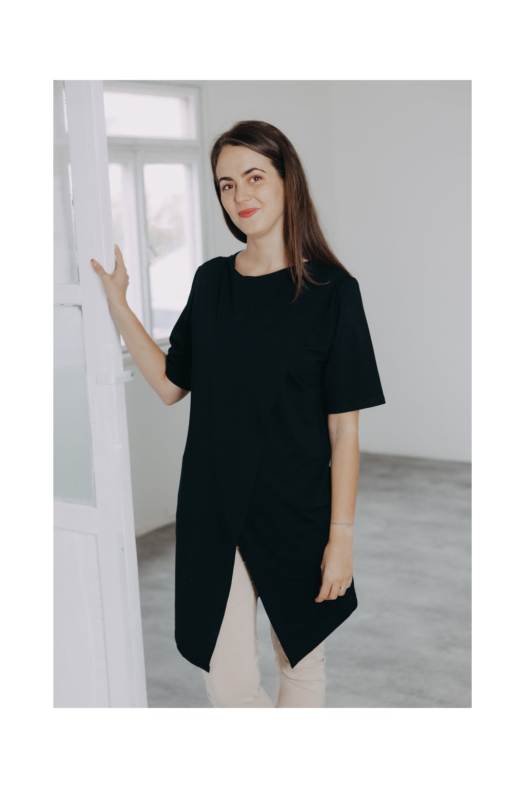 Oversized tričko Wave zaujme na první pohled. Šikovně řešený přední díl mu propůjčuje netradiční střih a ocení ho nejen minimalistky, ale i kojící maminky.