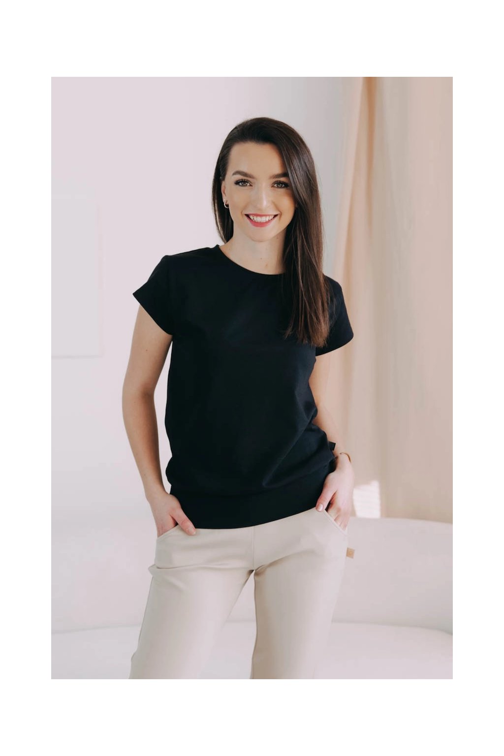 Triko Sefu je dokonalým spojením praktičnosti s nápaditostí. Kulatý výstřih, krátký rukáv a široká guma v pase, která zaručí, že zůstane přesně tam, kde má.