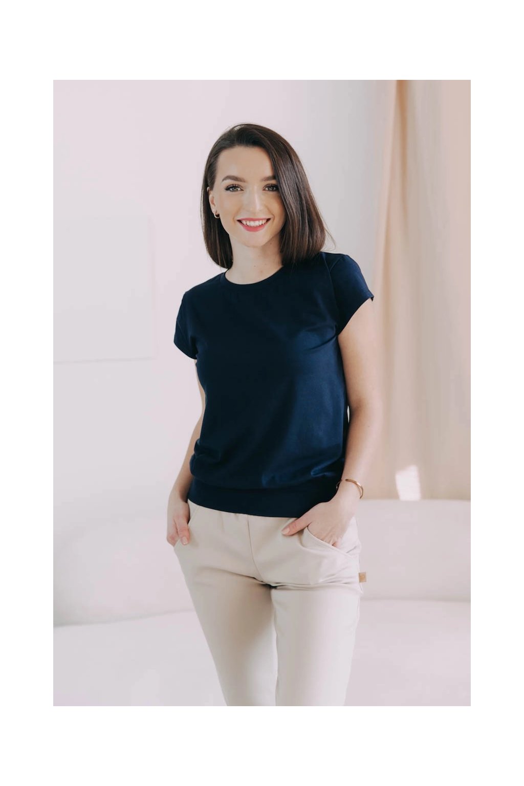 Triko Sefu je dokonalým spojením praktičnosti s nápaditostí. Kulatý výstřih, krátký rukáv a široká guma v pase, která zaručí, že zůstane přesně tam, kde má.
