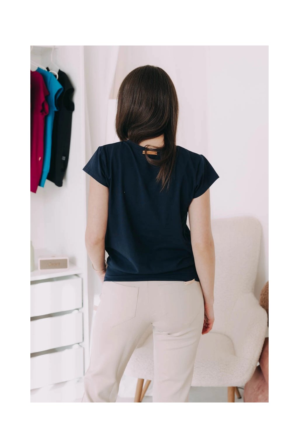 Krátké rukávy a kulatý výstřih jsou nadčasovou volbou pro každodenní nošení. Střední pružnost materiálu se přizpůsobí vašemu dennímu tempu a zajistí, že vám v Sefu bude pohodlně po celý den.