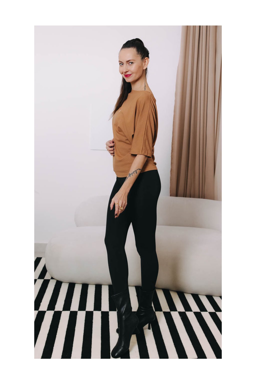 Některé kousky jsou tak rafinovaně ženské, že se prostě nedají nemilovat. Naše asymetrické tričko Yoko s lodičkovým výstřihem a netopýřími rukávy patří stoprocentně mezi ně. Střih trička jste si mimořádně oblíbily, a proto nepřestáváme kouzlit s různými barvami a materiály, ze kterých ho šijeme.