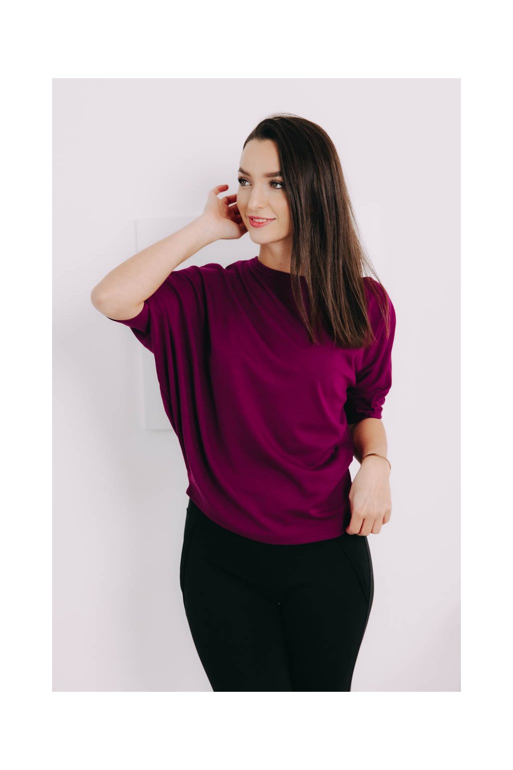 Některé kousky jsou tak rafinovaně ženské, že se prostě nedají nemilovat. Naše asymetrické tričko Yoko s lodičkovým výstřihem a netopýřími rukávy patří stoprocentně mezi ně. Střih trička jste si mimořádně oblíbily, a proto nepřestáváme kouzlit s různými barvami a materiály, ze kterých ho šijeme.
