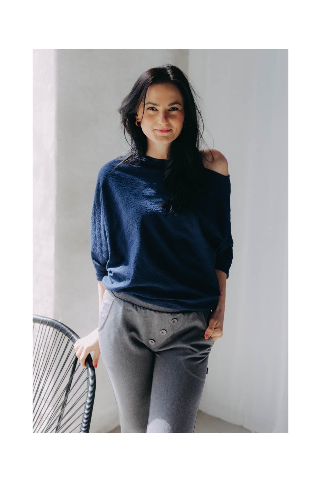 Některé kousky jsou tak rafinovaně ženské, že se prostě nedají nemilovat. Naše asymetrické tričko Yoko s lodičkovým výstřihem a netopýřími rukávy patří stoprocentně mezi ně. Střih trička jste si mimořádně oblíbily, a proto nepřestáváme kouzlit s různými barvami a materiály, ze kterých ho šijeme.